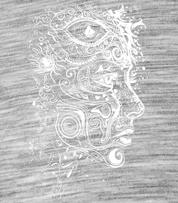 Abstraktní hlava, bílý tisk. Barevný útok na scénu! Tričko pro umělce, rebely a každého, kdo má rád hluboký psychedelický styl.