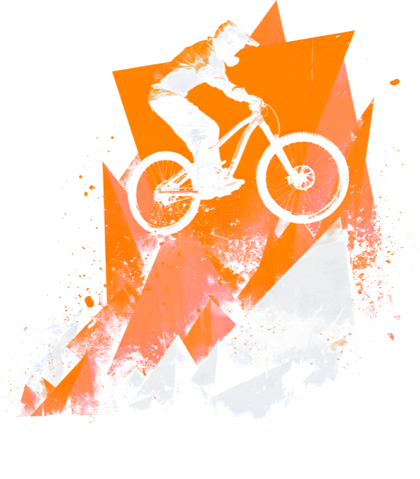 Abstraktní horské kolo, V2. Adrenalin a čistý design v jednom. Dynamický motiv horského cyklisty v letu, který je zasazený do abstraktní geometrické kompozice hor a zapadajícího slunce. Kombinace výrazné oranžové a šedé barvy na černém pozadí dodává triku obrovskou energii. Ideální pro jezdce, kteří milují traily a moderní grafiku. Tričko, mikina, kšiltovka, zástěra, tílko, hrnek, půllitr, plechový hrneček.