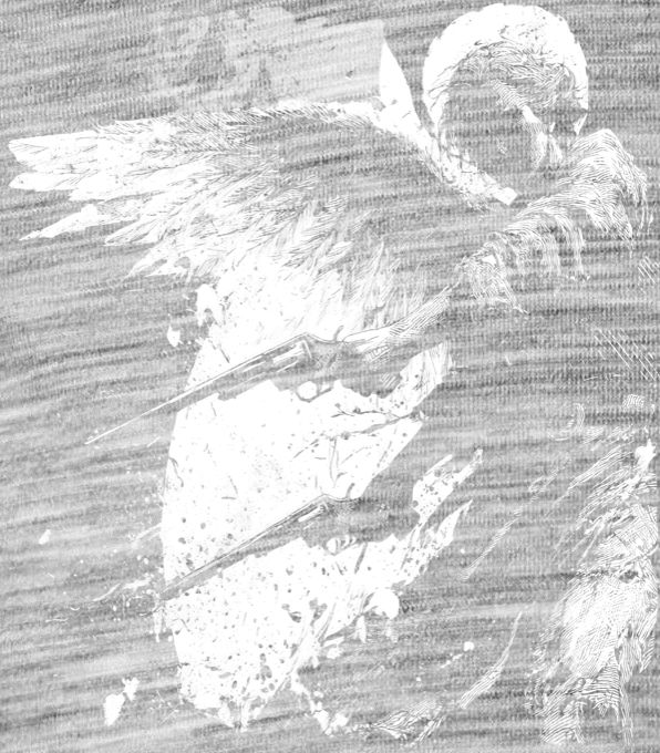 Anděl pomsty, bílý tisk. Když i nebi dojde trpělivost, nastupuje tento padlý anděl. Drsný grunge motiv zachycuje okřídlenou postavu se svatozáří, která vyměnila harfu za dva revolvery, ideální pro fanoušky street artu a rebelského stylu..