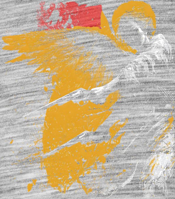 Anděl pomsty. Když i nebi dojde trpělivost, nastupuje tento padlý anděl. Drsný grunge motiv zachycuje okřídlenou postavu se svatozáří, která vyměnila harfu za dva revolvery, ideální pro fanoušky street artu a rebelského stylu.