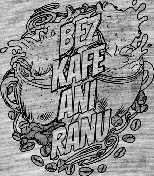 Bez kafe ani ránu, V1, černý potisk. Ranní záchrana pro každého kofeinového závisláka. Ideální tričko pro všechny, kteří potřebují svou ranní dávku energie dřív, než vůbec začnou fungovat.