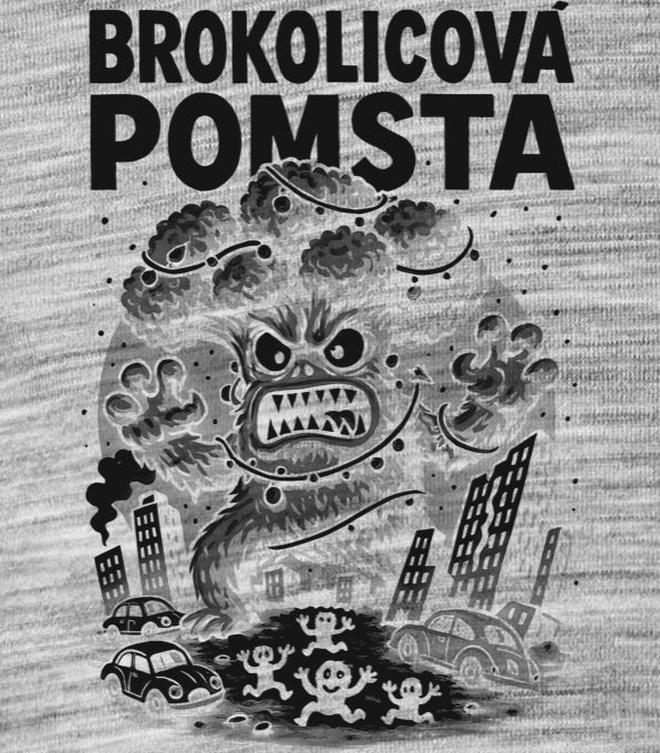 Brokolicová pomsta, černý tisk. I brokolice může být pořádný zabiják! Pro všechny, kdo nenávidí zeleninu, ale milují dobrý humor.