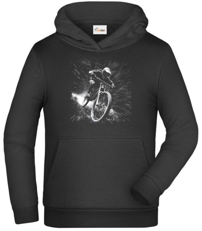 Černobílý sjezd, cyklista. Adrenalin v čisté černobílé formě! Tento dynamický motiv zachycuje cyklistu v plné rychlosti, rozmazávající se v explozi prachu a pohybu. Ideální pro fanoušky extrémních sportů a syrové, energické estetiky.