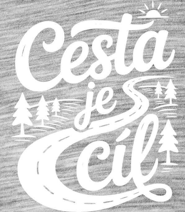 Cesta je cíl, bílý tisk. Pro ty, pro které není důležitý jen konec, ale hlavně zážitky po cestě!. Perfektní pro dobrodruhy, kteří si užívají přítomnost a milují outdoor.