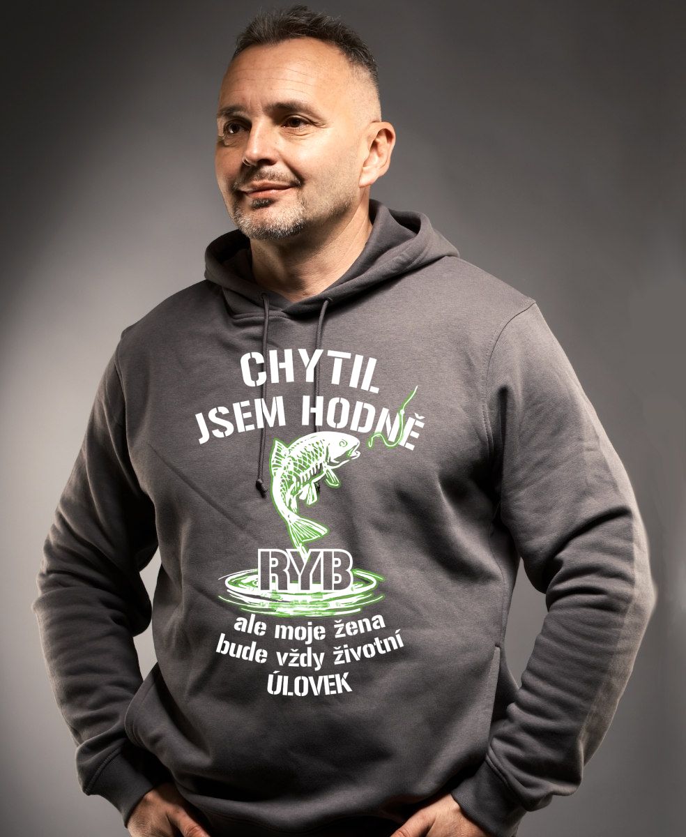 Chytil jsem hodně ryb, ale moje žena je životní úlovek. Bílý a zelený tisk. - Mikina ORIGO