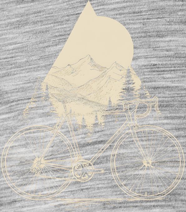Cyklistická geometrie, V2. Technika v objetí přírody. Tento minimalistický design v trojúhelníku je pro ty, kteří vnímají jízdu na kole jako dokonalou geometrickou rovnici štěstí. Tričko, mikina, kšiltovka, zástěra, tílko, hrnek, půllitr, plechový hrneček.