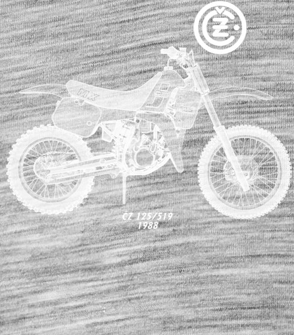 ČZ 125 / 519, motocross, bílý potisk, tričko, tílko, mikina, kšiltovka, zástěra, půllitr, plecháček, polštář