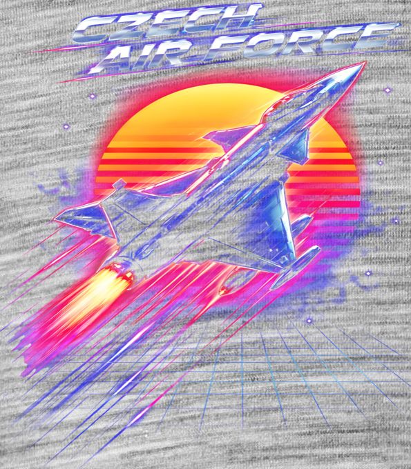 Czech Air Force . Dynamický motiv s vojenskou stíhačkou v ikonickém retro stylu 80. let. Ideální volba pro piloty, fanoušky českého letectva a milovníky neonové synthwave estetiky.