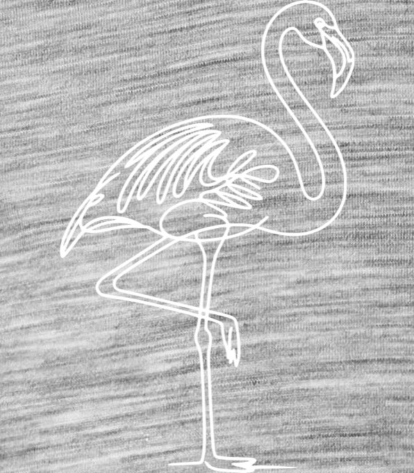 Divoká linie vlaštovka, bílý potisk. Elegance na jedné noze, zachycená jedinou plynulou linií. Tento plameňák je ztělesněním tropické grácie a minimalistického stylu.