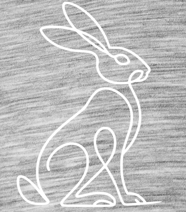 Divoká linie zajíc, bílý potisk. Rychlost a bleskové reakce, vyjádřené jednou čistou linií. Tento zajíc sedí v pozoru, připraven kdykoli skočit.