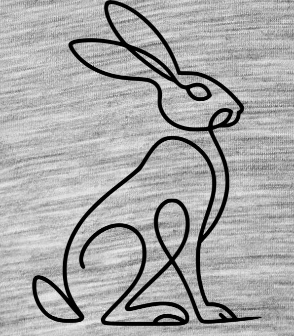 Divoká linie zajíc, černý potisk. Rychlost a bleskové reakce, vyjádřené jednou čistou linií. Tento zajíc sedí v pozoru, připraven kdykoli skočit.