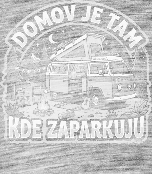 Domov je tam kde zaparkuju, bílý tisk. Ultimátní kousek pro všechny vyznavače svobody, vanlife a kempování. Retro ilustrace ikonického karavanu zaparkovaného v lese u táboráku, doplněná o nápis „Domov je tam, kde zaparkuju“. Útulné teplé barvy a dobrodružná atmosféra dělají z tohoto trika ideálního parťáka na letní roadtripy, toulky přírodou i dlouhé večery u ohně.