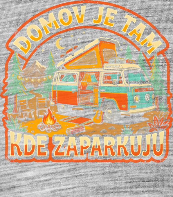 Domov je tam kde zaparkuju. Ultimátní kousek pro všechny vyznavače svobody, vanlife a kempování. Retro ilustrace ikonického karavanu zaparkovaného v lese u táboráku, doplněná o nápis „Domov je tam, kde zaparkuju“. Útulné teplé barvy a dobrodružná atmosféra dělají z tohoto trika ideálního parťáka na letní roadtripy, toulky přírodou i dlouhé večery u ohně. Tričko, tílko, mikina, kšiltovka, zástěra, hrnek, plechový hrnek, termoska, půllitr, kraťasy, polštář.