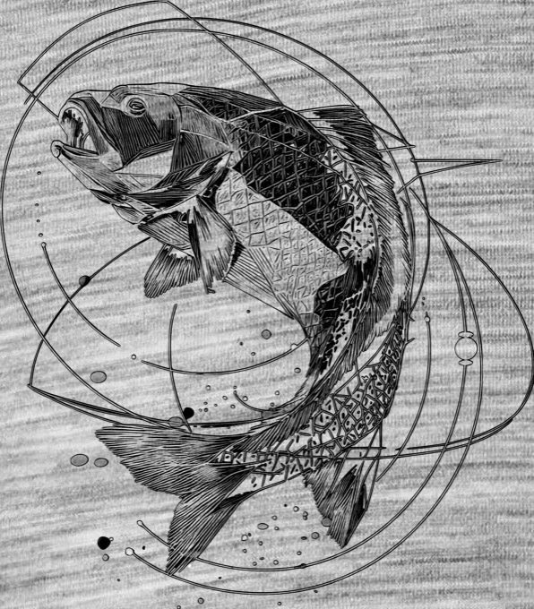 Dravá Ryba, černý potisk. Precizní grafika dravé ryby v dynamickém výskoku. Moderní zpracování s neonovými prvky a technickými liniemi, které z klasického rybářského motivu dělají stylový kousek. Ideální pro rybáře, co chtějí vypadat sakra dobře i mimo břeh, nebo pro fanoušky originálního art designu..
