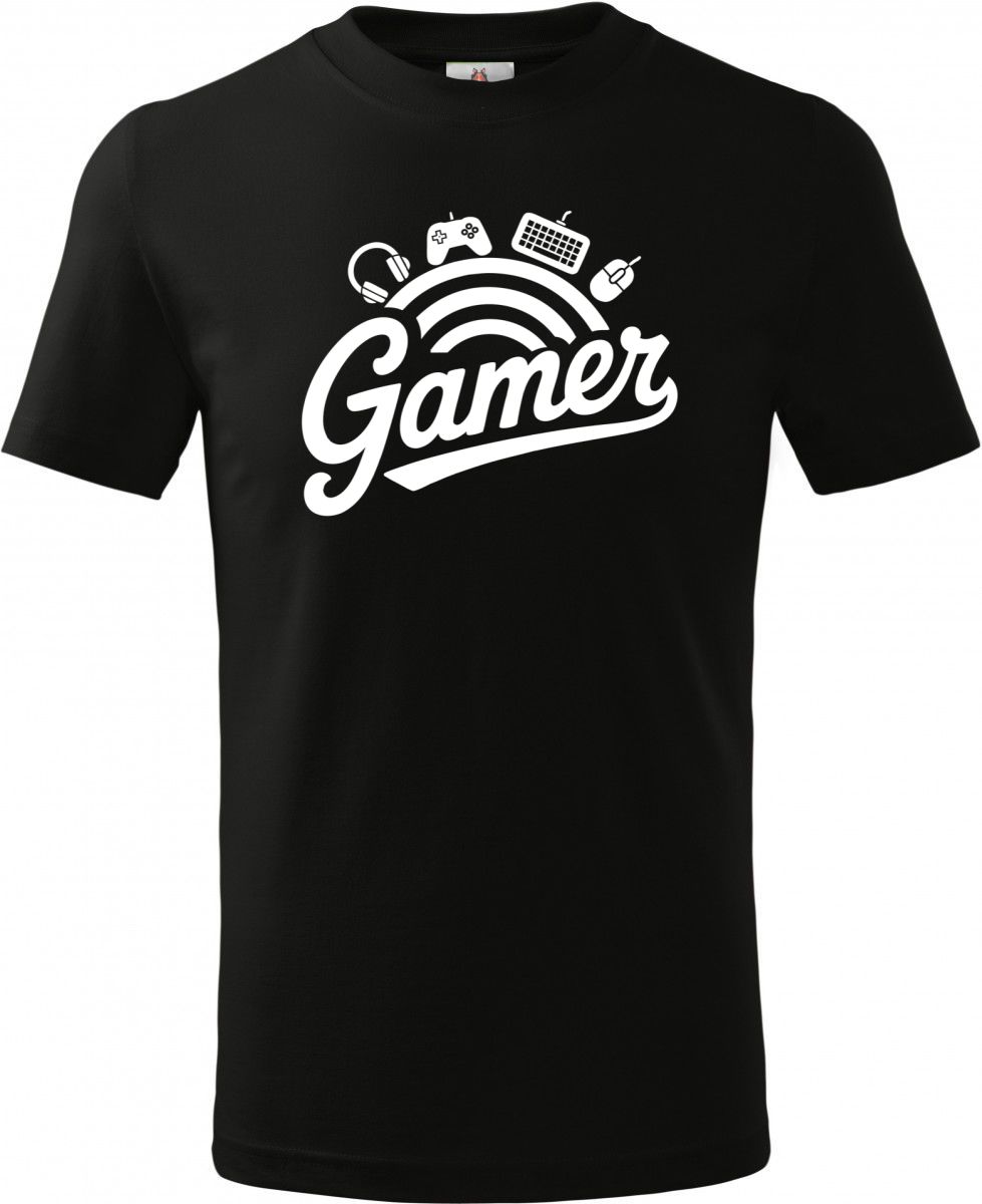 Gamer, V2, bílý tisk. Jsi připraven na další level? Ať už jsi casual hráč, nebo e-sportový profesionál, tohle je tvůj dres pro vítězství!