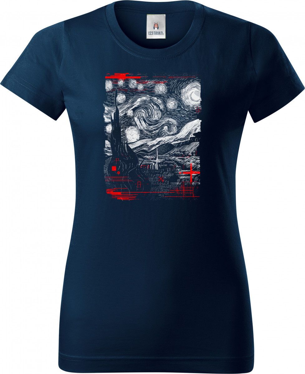 Glitch Art: Hvězdná noc. Van Goghova “Hvězdná noc” se setkává s digitální destrukcí. Klasické mistrovské dílo je narušeno glitch efekty a červenými liniemi, což vytváří moderní a temný pohled na známou krásu. Pro ty, kdo milují umění s nádechem kyberpunku.