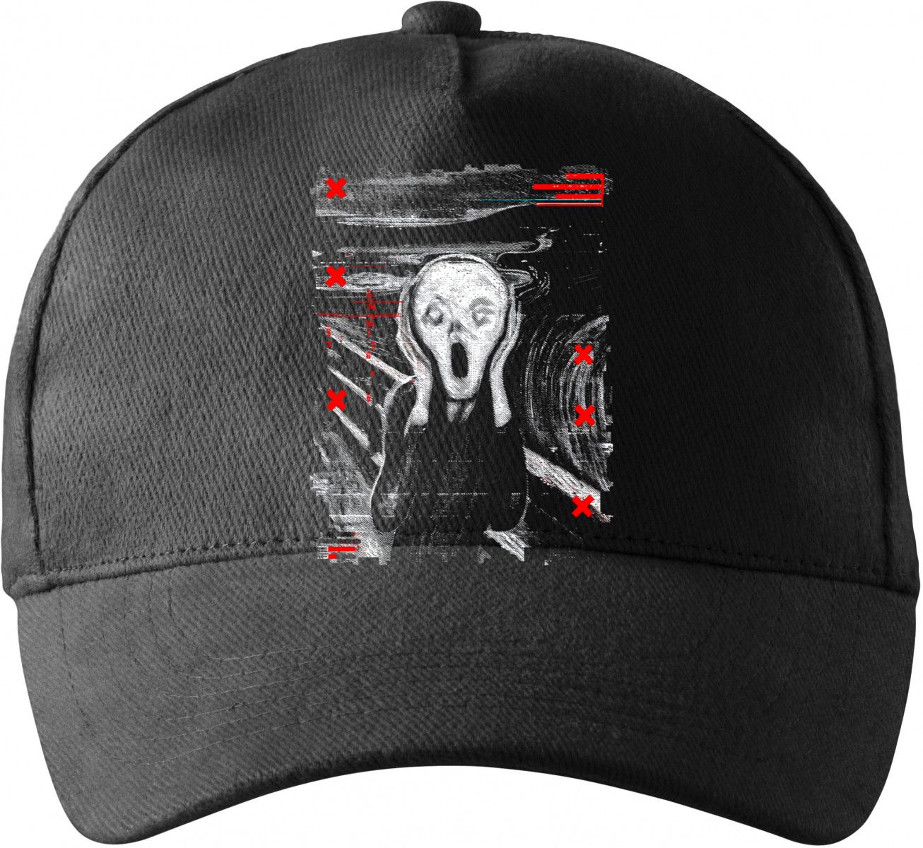 Glitch Art: Výkřik. Munchův ikonický “Výkřik” dostává digitální upgrade. Tato černobílá verze s červenými glitch efekty a rušivými elementy vyjadřuje moderní úzkost ve světě plném technologií. Ideální pro milovníky umění a temné, introspektivní estetiky
