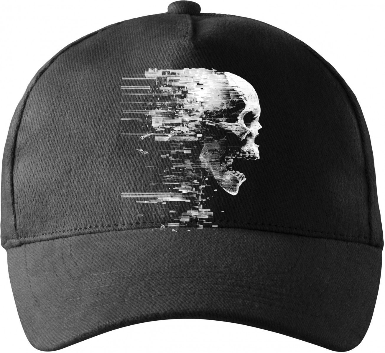 Glitch lebka, bílý tisk - Kšiltovka, čepice 5P