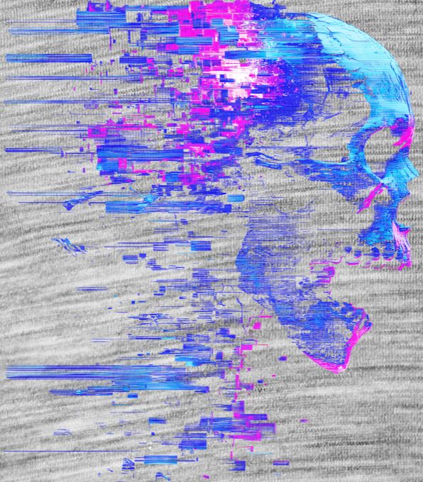 Glitch lebka. Kombinace smrtícího motivu a kyberpunkového chaosu!