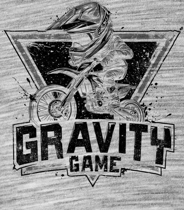 Gravity game, černý tisk. Energetický design plný pohybu pro fanoušky extrémních sportů a adrenalinu.