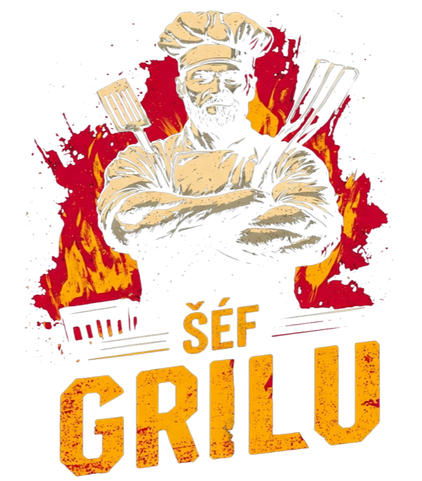 Grilovací tričko Šéf Grilu. Jste král grilu a každá grilovací párty je vaše doména? Tento design je pro všechny, kteří berou grilování vážně. Ideální dárek pro tátu, dědu nebo každého milovníka grilovaného masa. Tričko, mikina, kšiltovka, zástěra, tílko, hrnek, půllitr, plechový hrneček.