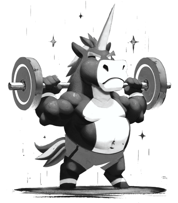 Gym horn, černý potisk. I jednorožec si musí zasloužit duhu! Tričko pro všechny fitness nadšence a milovníky cukrové vaty, kteří zvedají těžké váhy