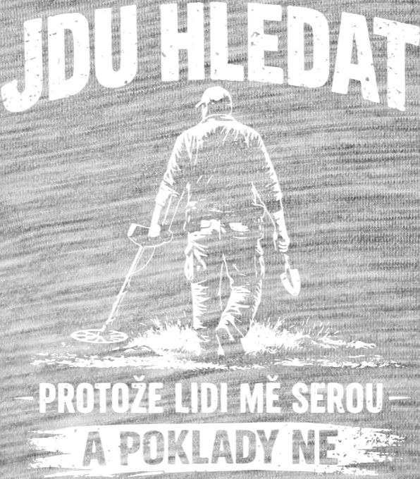 Hledač pokladů, bílý tisk. Vtipný motiv pro vášnivé hledače s detektorem kovu, kteří dávají přednost klidu v přírodě před lidmi. Ideální tričko pro každého, kdo ví, že ty nejlepší poklady nekecají a nedělají problémy.. Tričko, mikina, kšiltovka, zástěra, tílko.