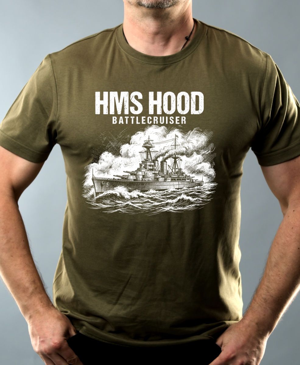 HMS HOOD. Tričko, mikina, kšiltovka, zástěra, tílko, hrnek, půllitr, plechový hrneček.