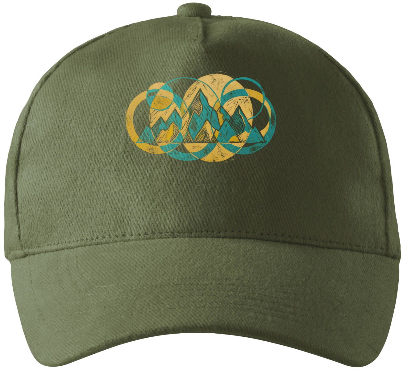 Horská geometrie, V2. Panorama horských hřebenů je zde propleteno s geometrickými tvary v hořčicově žluté a modrozelené barvě. Design působí dynamicky a vyváženě díky propojení ostrých linií hor a měkkých kružnic. Skvělá volba pro každého, kdo chce nosit kousek hor ve svěžím, grafickém provedení.. Tričko, mikina, kšiltovka, zástěra, tílko, hrnek, půllitr, plechový hrneček.