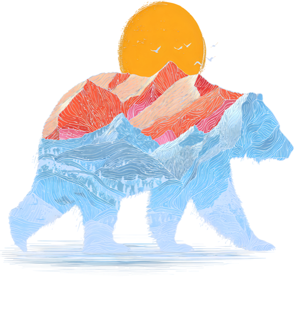 Horský medvěd. Nádherný umělecký kousek pro všechny opravdové milovníky hor a nespoutané divočiny. Detailní silueta kráčejícího medvěda v sobě ukrývá celou přírodní scenerii, kde se majestátní horská krajina prolíná se zapadajícím sluncem a letícími ptáky. Kontrast chladných modrých tónů v údolí a teplých červených vrcholků dělá z tohoto designu naprostou pastvu pro oči. Dokonalé tričko na dlouhé túry, večery u táboráku nebo zkrátka pro dny, kdy tě volá volání divočiny. Tričko, mikina, kšiltovka, zástěra, tílko, hrnek, půllitr