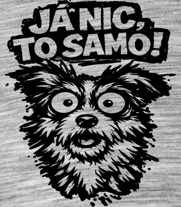 Já nic, to samo! černý potisk. Tohle tričko přesně vystihuje ten moment, kdy tvůj pes zase něco vyvede. Dokonale vyjevený psí pohled a legendární výmluva „Já nic, to samo!“. Zábavný a trefný design, ve kterém se okamžitě najde každý majitel chlupatého rošťáka. Perfektní volba pro každodenní venčení nebo jako vtipný dárek pro pejskaře.