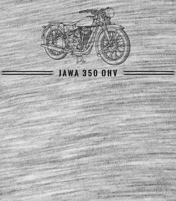 JAWA 350 OHV, V11, černý tisk. Tričko, mikina, kšiltovka, zástěra, tílko, hrnek, půllitr, plechový hrneček.