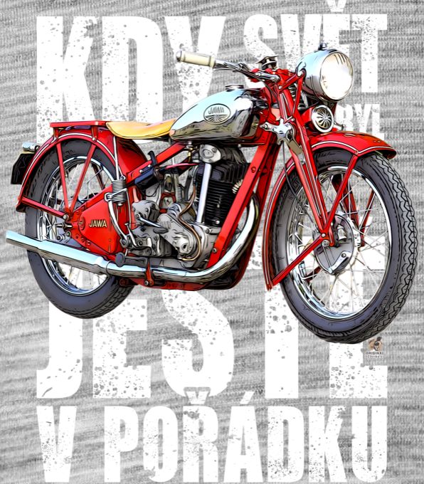 JAWA 350 OHV, V8. Tričko, mikina, kšiltovka, zástěra, tílko, hrnek, půllitr, plechový hrneček.