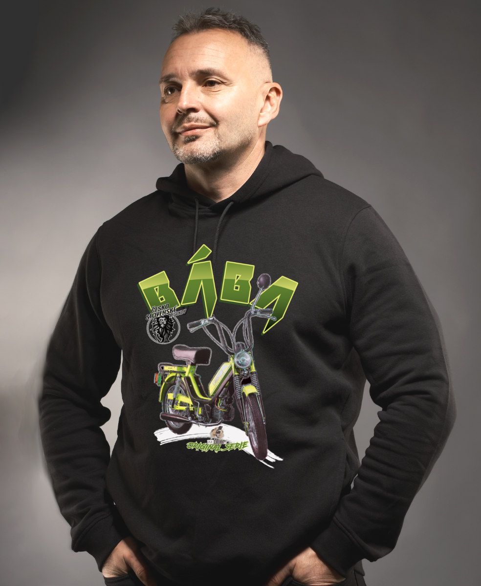 Jawa Babbeta dvojrychlostní. Trochu zlobila po čase spojka, ale je její sametový běh a rychlost stála za to. Ideální dárek pro motorkáře, dědu, tátu, skoro všichni na ni jeli :). Triko Babetta je opravdu originální dárek k sehnání pouze na www.123triko.cz. Tričko, mikina, kšiltovka, zástěra, tílko.