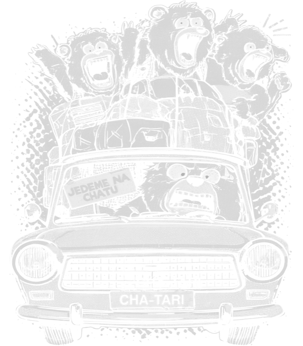 Jedeme na chatu, V2, bílý tisk. Geniální retro motiv, který zná snad každý, kdo někdy zažil klasický rodinný výlet. Ať už vás na konci cesty čeká pohodová lesní krajina nebo jen další práce na zahradě, s tímto vtipným kouskem dáte všem jasně najevo, jak moc se na víkend těšíte.