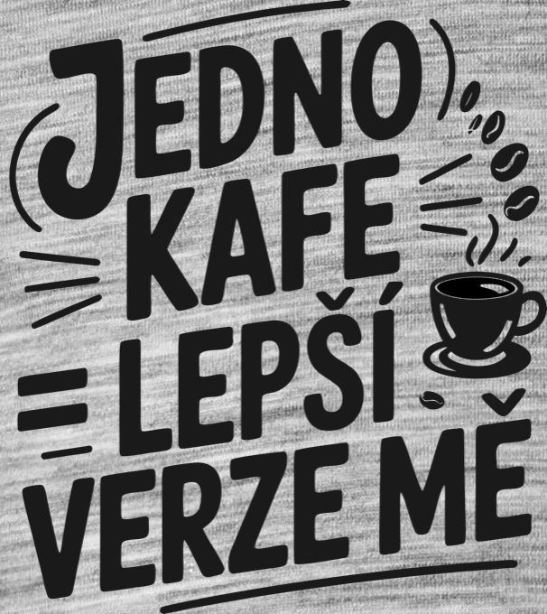 Jedno kafe, lepší verze mě, černý potisk. Skvělý typografický motiv pro ty, kterým v žilách místo krve koluje kofein. Parádní a vtipné tričko pro všechny, co bez svého oblíbeného nápoje zkrátka neumí pořádně nastartovat