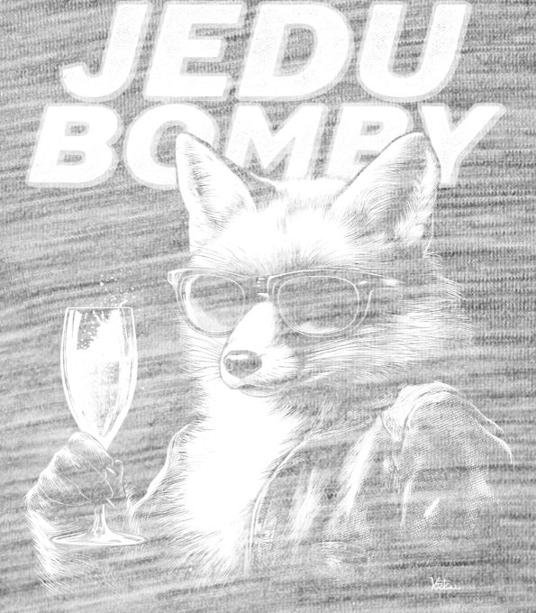 Jedu bomby, liška, bílý tisk. Šampaňské, brýle a sako – tato liška je nekorunovaným králem (nebo královnou) večírků. Ať už jedete na party nebo jen do práce, jeďte bomby!