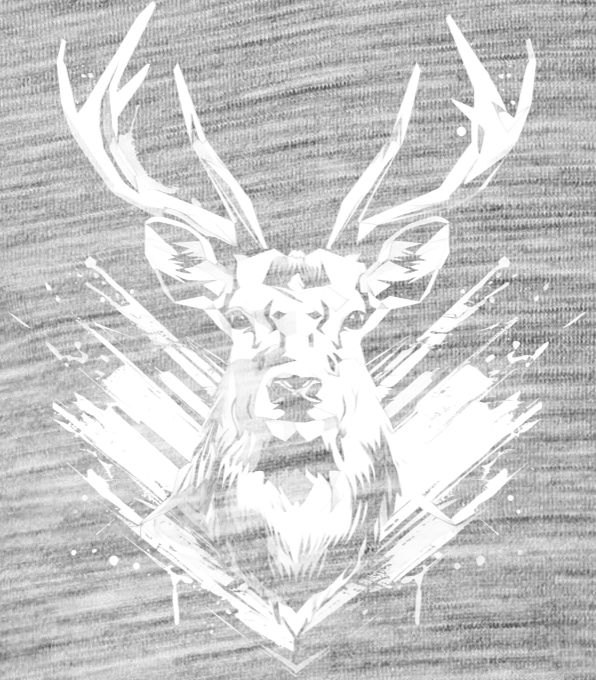 Jelení extravaganza, bílý potisk. Majestátní jelen s parožím plným divokých barev a energie. Nádherná, nespoutaná grafika pro krále lesa, který se rozhodl být vidět.
