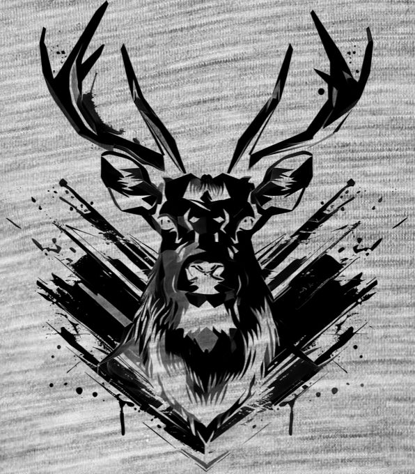 Jelení extravaganza, černý potisk. Majestátní jelen s parožím plným divokých barev a energie. Nádherná, nespoutaná grafika pro krále lesa, který se rozhodl být vidět.