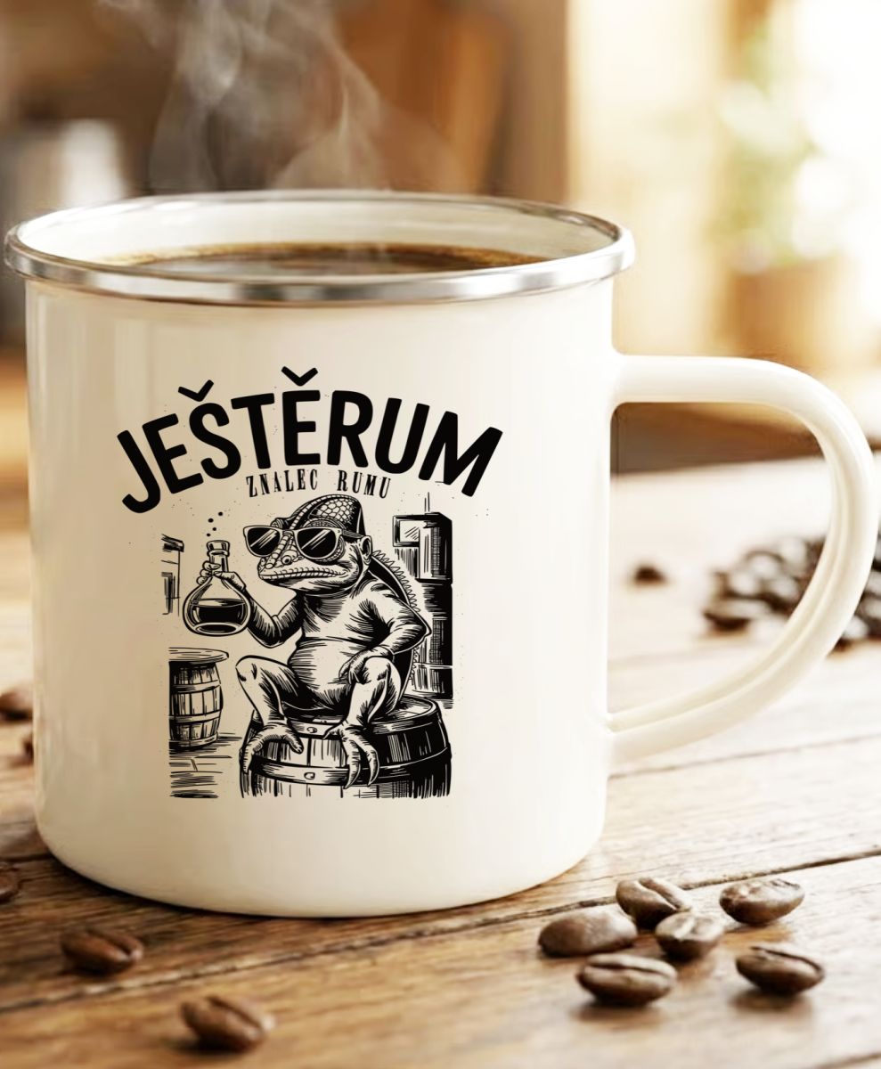 JEŠTĚRUM – znalec rumu. Tričko, mikina, kšiltovka, zástěra, tílko, hrnek, půllitr, plechový hrneček