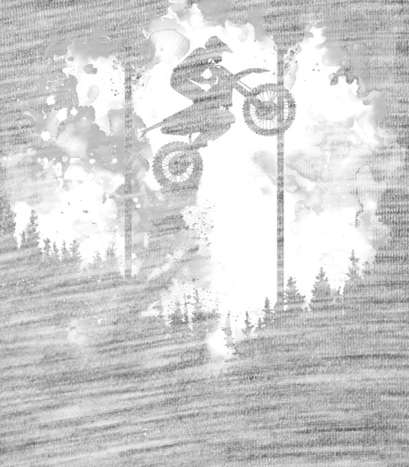 Jezdec terénem, bílý tisk. Adrenalinová exploze v uměleckém stylu! Když jezdíš terénem, okolní svět se rozmaže a zůstane jen záplava emocí a rychlosti. Ponoř se do divoké akce.