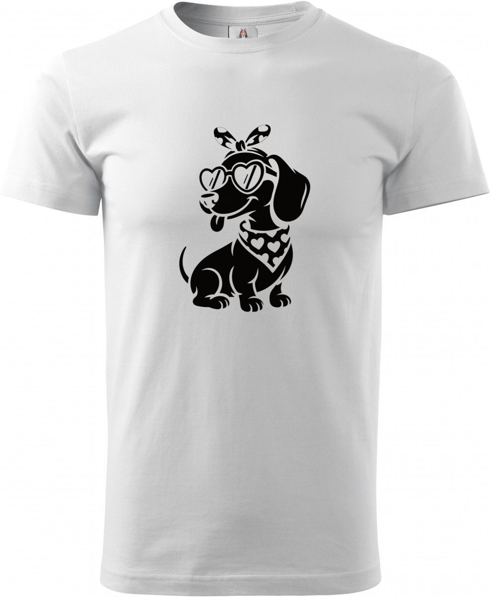 Jezevčík s brýlemi, černý tisk. Ideální pro milovníky psů a roztomilých designů.