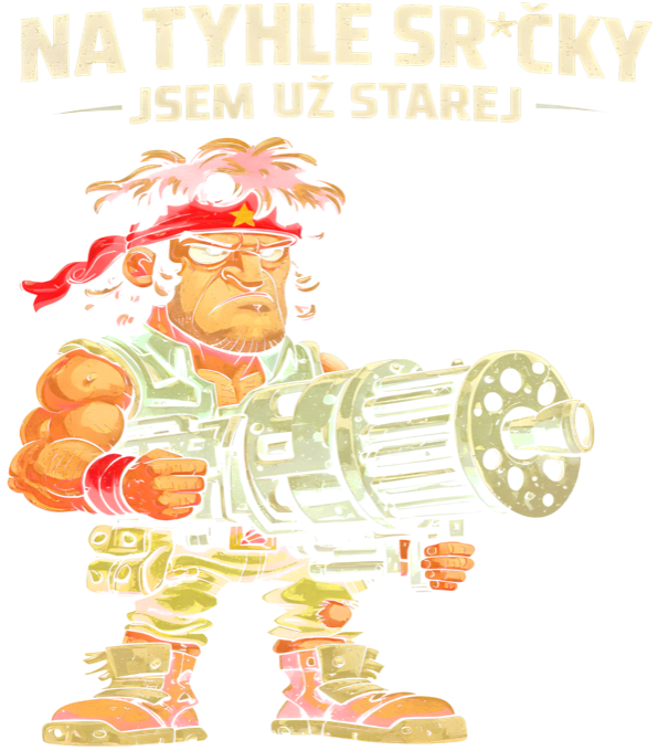 Jsem už starej. Legendární hláška pro všechny veterány, kteří už mají na určité věci prostě svůj věk a nulovou trpělivost. Stylový retro motiv s drsným akčním hrdinou, který to řekne za vás. Tričko, mikina, kšiltovka, zástěra, tílko, hrnek, půllitr, plechový hrneček