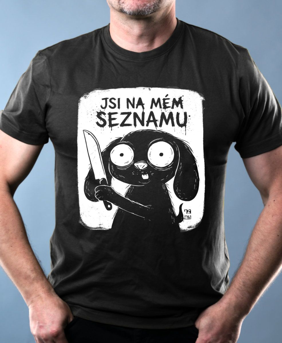 Jsi na mém seznamu, bílý potisk. Roztomilost se smrtícím nádechem. Tento “creepy cute” motiv s králíčkem držícím nůž je perfektním vyjádřením černé lásky a sarkasmu pro všechny, kteří chtějí dát najevo, že mají své priority (a oběti) jasně srovnané. Tričko, tílko, mikina, kšiltovka, zástěra.