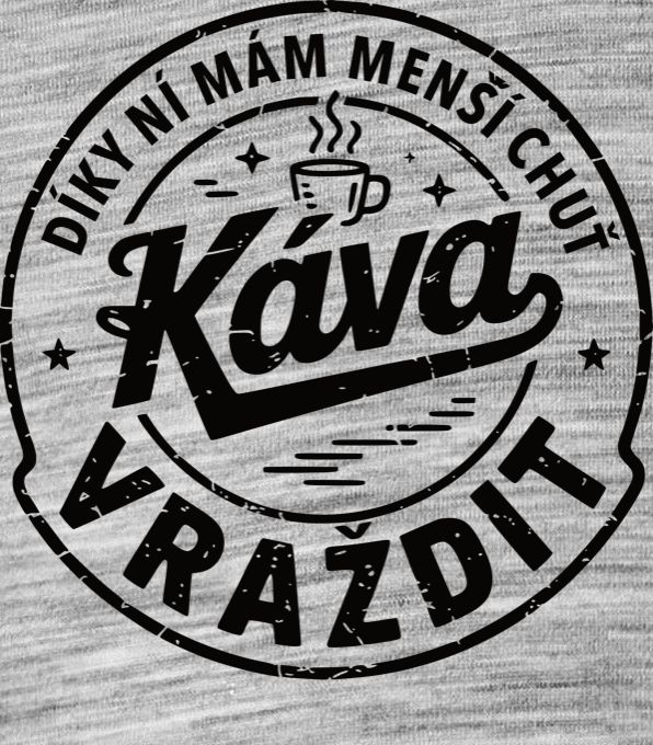 Káva, díky ní mám menší chuť vraždit. V1, černý potisk. Pro všechny, co bez kafe nevydrží ani minutu. S tímhle tričkem dáte hned ráno všem najevo, že jste sice milí, ale bez pořádné dávky kofeinu to s vámi bude těžké