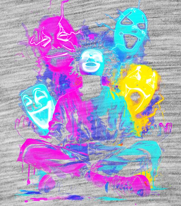 Kdo tady hraje. Život je jen divadlo plné barevných a bláznivých masek – a vy sedíte uprostřed scény! Tričko, tílko, mikina, kšiltovka, zástěra, hrnek, hrneček, půllitr, plechový hrnek