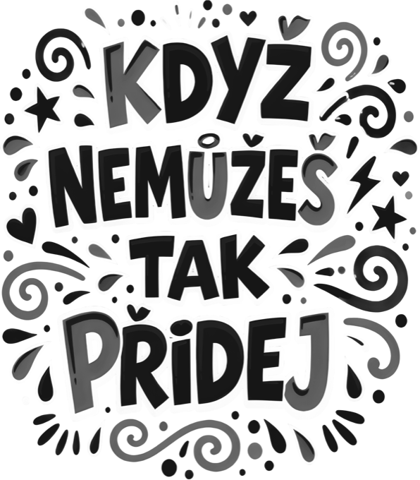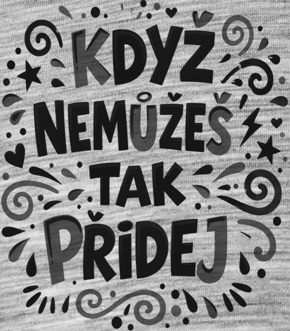 Když nemůžeš tak přidej, černý potisk. Legendární motivační heslo Emila Zátopka v pestrém a hravém provedení plném barev. Ideální povzbuzení pro běžce, sportovce a všechny, kteří potřebují pozitivní energii k překonání vlastních limitů.
