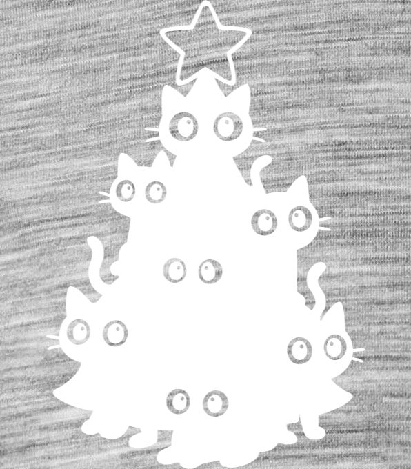 Kočičí vánoce bílý tisk. Vánoce plné chlupatých překvapení! S tímto designem, kde je vánoční stromek sestavený z roztomilých koček, dáte jasně najevo svou lásku ke kočkám a sváteční atmosféře.
