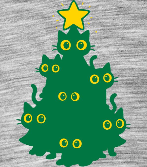 Kočičí vánoce. Vánoce plné chlupatých překvapení! S tímto designem, kde je vánoční stromek sestavený z roztomilých koček, dáte jasně najevo svou lásku ke kočkám a sváteční atmosféře.
