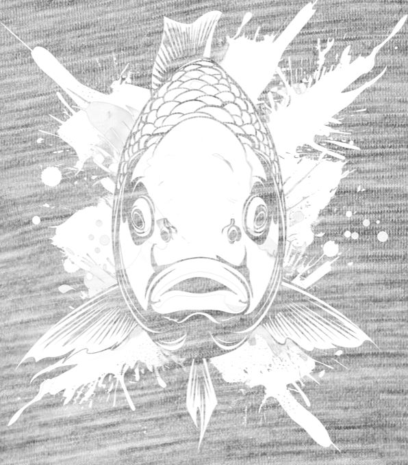 Koi ryba Pop, bílý potisk. Tahle ryba plave v oceánu bílé barvy a rozstřiku energie. Ikonická Koi v divokém, moderním stylu je symbolem štěstí a vytrvalosti.